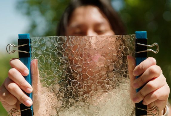 “But I also started noticing they’re actually fairly strong. They’re thin, somewhat flexible, and pretty lightweight too for their strength,” she said. “And that got me thinking: well, what other material has these properties? Plastics.”