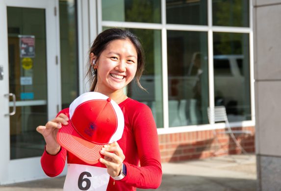 “My favorite part of the run was when a group of us got confused about the route, so we cut through the lawn in front of Tang Hall,” Dong said. At the finish line, she showed off a red DMSE hat—one of the giveaways laid out alongside ripe bananas and bottles of water.