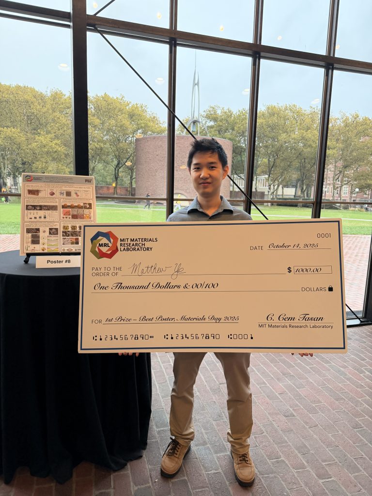 In addition, 16 MIT students participated in a poster competition on specific projects related to advanced materials. All were nominated for the honor by their respective advisors. The winner was Matthew Ye for a poster titled “Kinetic Engineering in Colloidal Assembly: Synthetic Tools for Complex Architectures.” Ye is a DMSE graduate student.